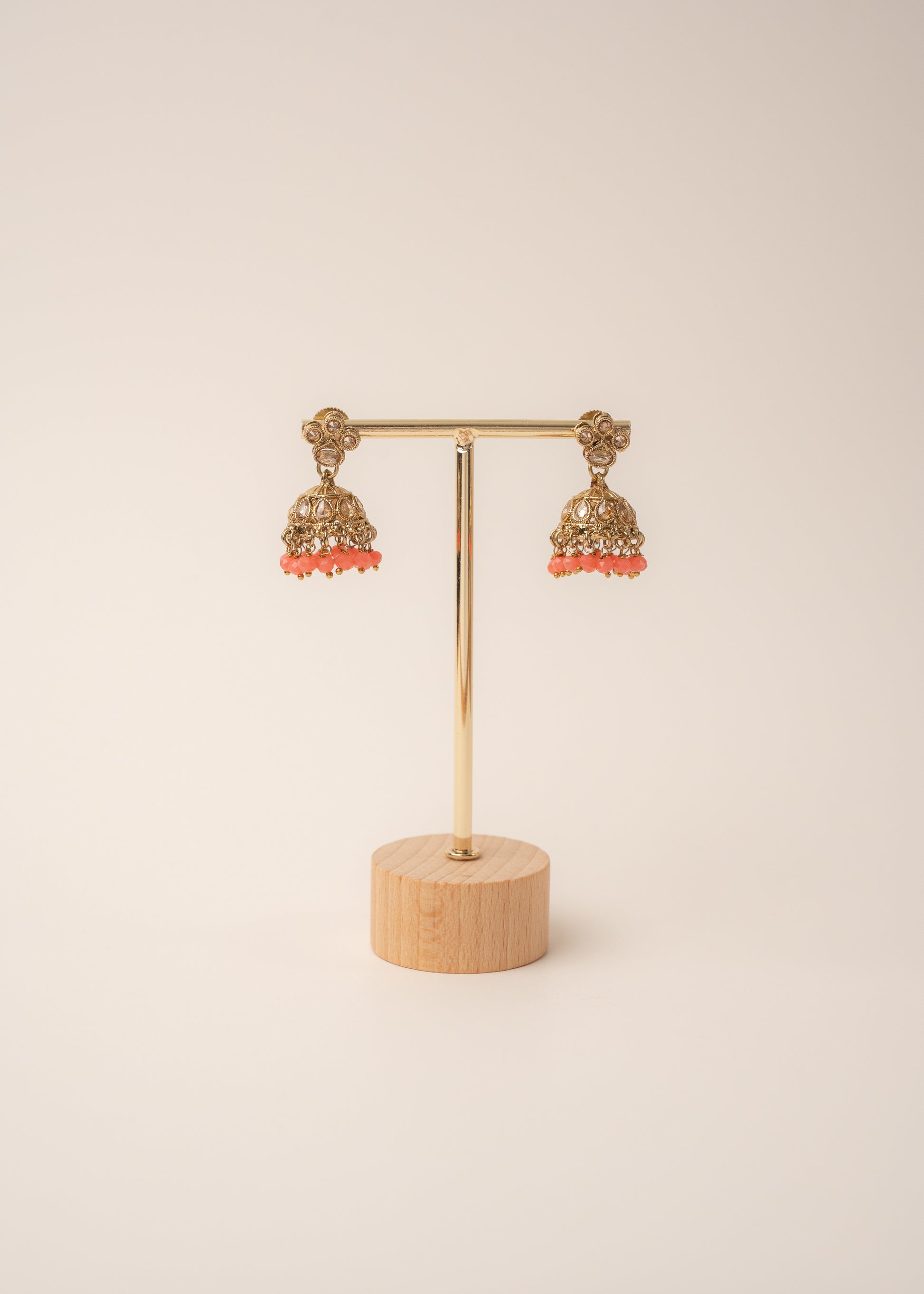 A radiant crimson kundan set that exudes bridal brilliance. With golden accents, it makes a bold and beautiful wedding statement.